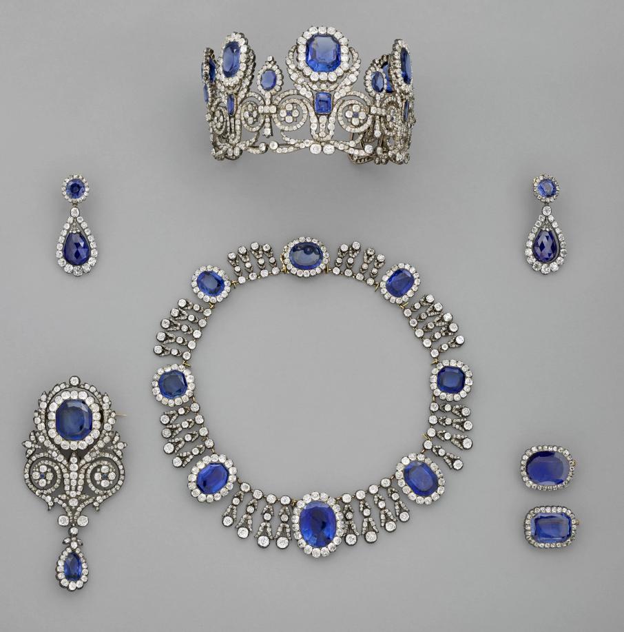 图为玛丽-阿梅莉王后与奥尔唐斯王后的冠冕、蓝援手项链及蓝援手耳饰(府上图)